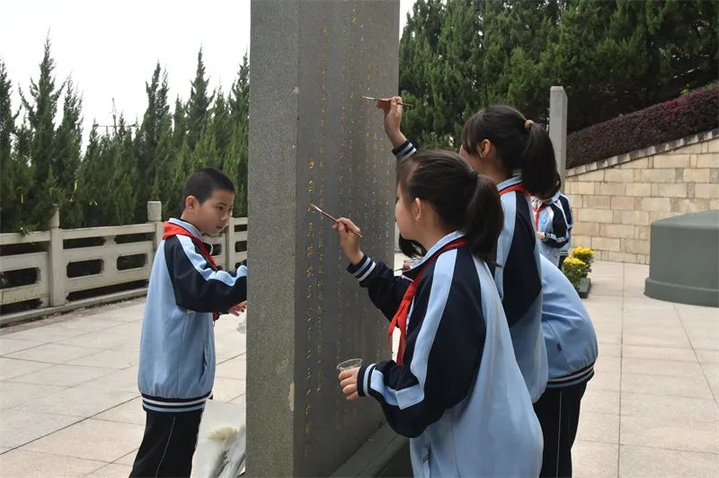 随后,在烈士陵园讲解员的引导下,现场学生以多种形式缅怀先烈。在烈士墓区,师生们怀着崇敬之心,用心擦拭烈士墓碑,满怀感恩之情,书写寄语卡片,表达对英烈的缅怀之情,厚植爱党爱国的情怀;在英烈事迹馆,大家认真聆听讲解,仔细观察实物和珍贵的图片,一起缅怀革命先烈,致敬平凡而伟大的英雄。
