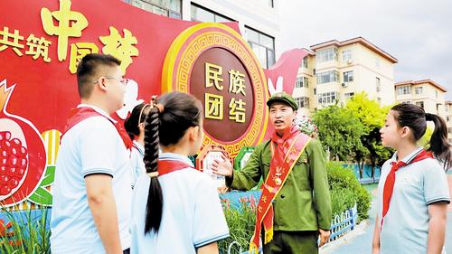 这位胸前佩戴党员徽章的老人,声音洪亮,手势有力,将党的创新理论化作朗朗上口的童谣——“你拍一,我拍一,国家富强是根基;你拍二,我拍二,人民民主议大事……”台下听讲的孩子们,眼睛总是亮晶晶的。
