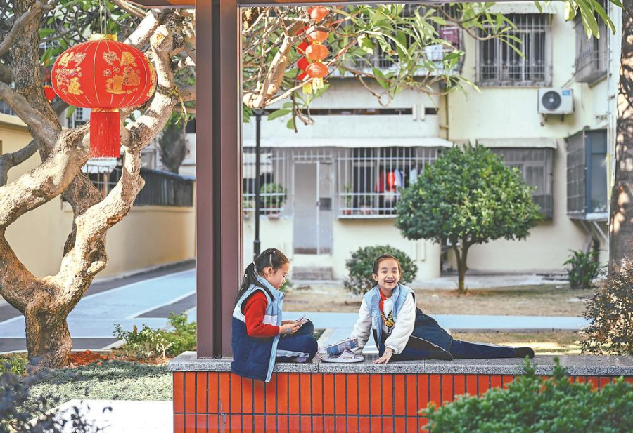 文屏山庄一期旧貌换新颜,小朋友在小区玩耍。 图片来源:福建日报 林铭鸿 摄